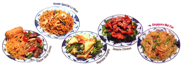 1. Roast Pork Egg Roll (1)...................................... 2. Shrimp Egg Roll (1)............................................. 3. Spring Roll (1)...................................................... 4. French Fries......................................................... 5. Fried Chicken Nuggets(10)............................... 6. Fried Pork Wonton (8)...................................... 7. Fried Cream Cheese Wonton (8)...................... 9. Teriyaki Chicken (4)............................................. 11. Fried Chicken Wings (4)..................................... 12. Fried or Steamed Dumplings (8)........................ 28. Vegetable Chow Mein...................... 29. Roast Pork Chow Mein..................... 30. Chicken Chow Mein.......................... 31. Beef Chow Mein............................... 32. Shrimp Chow Mein........................... 33. House Special Chow Mein............... 34. Plain Fried Rice ( w.Onion)................ 35. Vegetable Fried Rice......................... 36. Roast Pork Fried Rice....................... 37. Chicken Fried Rice............................ 38. Beef Fried Rice................................. 39 Shrimp Fried Rice.............................. 40. House Special Fried Rice................ 41. Vegetable Lo Mein............................. 42. Roast Pork Lo Mein............................. 43. Chicken Lo Mein.................................. 44. Beef Lo Mein........................................ 45. Shrimp Lo Mein.................................... 46. House Special Lo Mein....................... 47. Vegetable Chow Mai Fun.................................. 48. Chicken or Roast Pork Chow Mai Fun............. 49. Shrimp or Beef Chow Mai Fun.......................... 50. House Special Chow Mai Fun.......................... 51. Singapore Chow Mai Fun................................. 52. Vegetable Egg Foo Young............................... 53. Chicken or Roast Pork Egg Foo Young......... 54. Shrimp or Beef Egg Foo Young....................... 55. House Special Egg Foo Young....................... 56. Roast Pork w. Mixed Vegetable.......... 57. Roast Pork w. Chinese Vegs............... 58. Hot&Spicy Pork................................................... 59. Roast Pork w. Hunan Style................................. 60. Roast Pork w. Szechuan Style........................... |